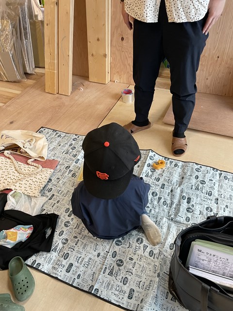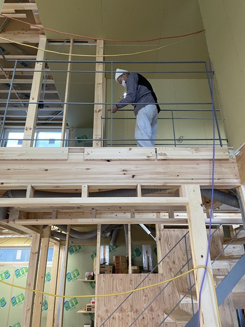 お子さんが2Fに上がっても大丈夫なように、鉄骨の手摺を設置しているOさん。あーざす🙇