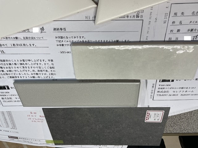 色が確定したので、組み合わせとタイル目地寸法をご確認いただいておりますぅ~。