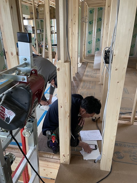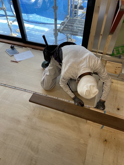 大工Oさんは、一生懸命寸法をだしてます。