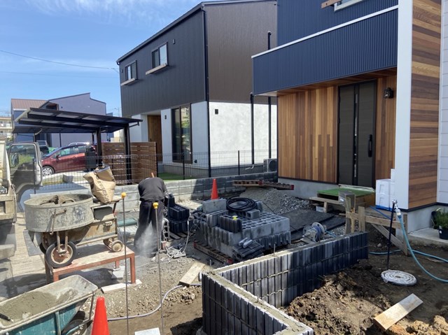 VILLAGEのH様邸~。着々と化粧ブロックが積まれて行ってますね♪