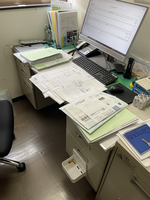 丸一日外出して戻ると、ワタクシの机はこの状態になります、、、