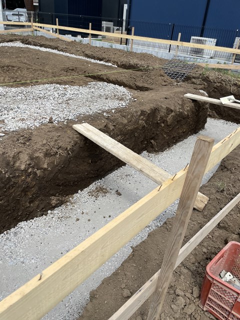 深基礎にする部分をガッツリ掘ってて、今日ステコン流す段取り~。着々と進んでおります。