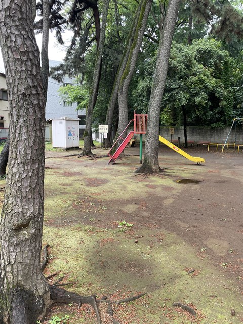 小さい公園があり、左前方にある倉庫みたいのがなんと!公衆トイレ✨
