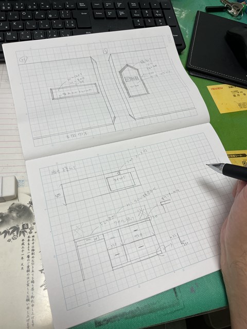 その後は、昨日打ち合わせしたS様邸の造作図とデザインの検討ですわ。
