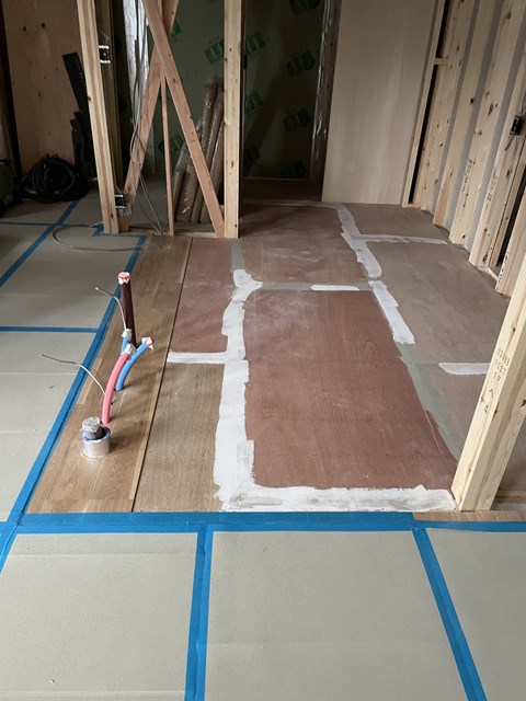 近々フロアタイル屋さんが施工に入るのねー。パテ処理されてるわ♪