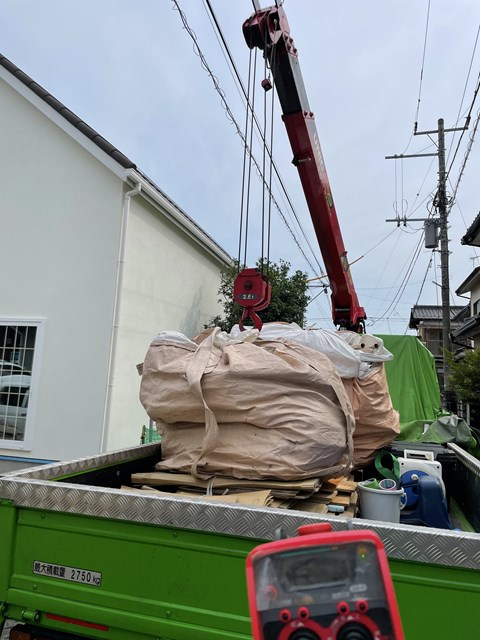 産廃で荷台がいっぱいになってしまったので、いったん置き場にて荷下ろし。。。