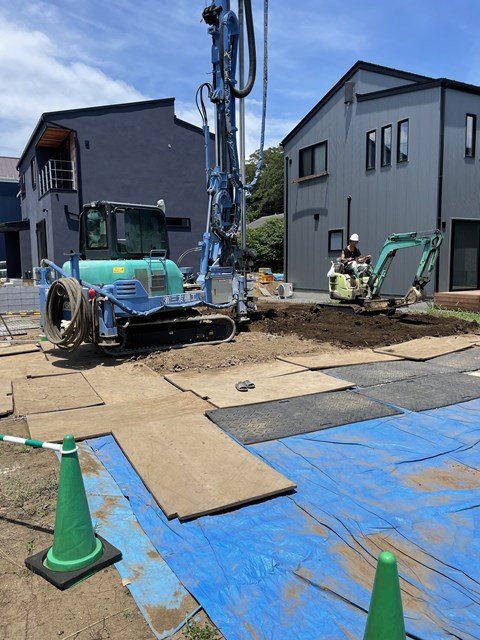 残念な事に改良判定が出てしまい、改良工事中~。お隣のT様邸はセーフだったのになぁ。。。地盤はホントわからんわ。