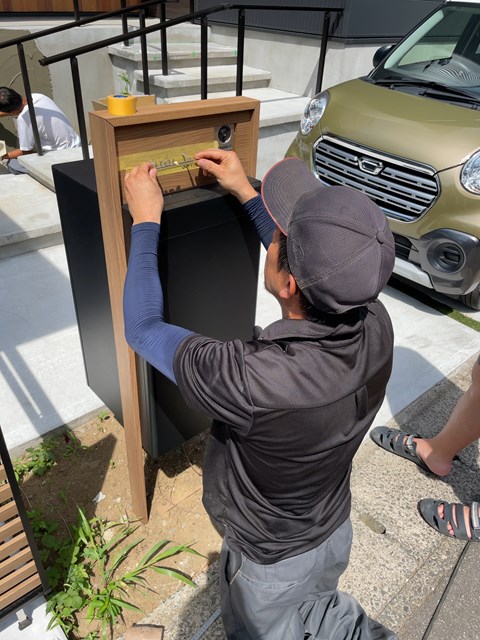 さてさて、9時半~VILLAGEのI様邸にて表札取付け位置立ち合い~。