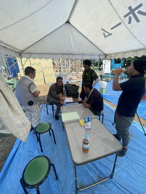 ワタクシが急遽小屋裏換気部材を変えたので、社員大工さん同士で井戸端会議~