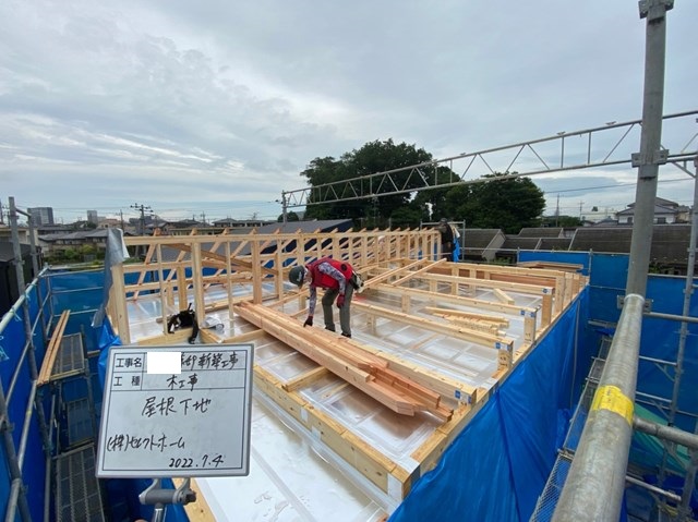 因みに今写ってる大工Oさんは前回の上棟で熱中症になり15時の休憩後リタイヤ。