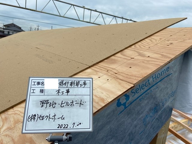 先行防水紙の上に野地板、そしてビルボード(吸音材。いちお断熱効果もあるらしいよ!期待してないけど((´∀`*))ヶラヶラ)