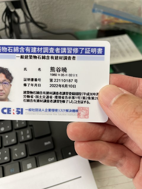 コレでワタクシはアスベスト調査者として調査出来マッスル💪