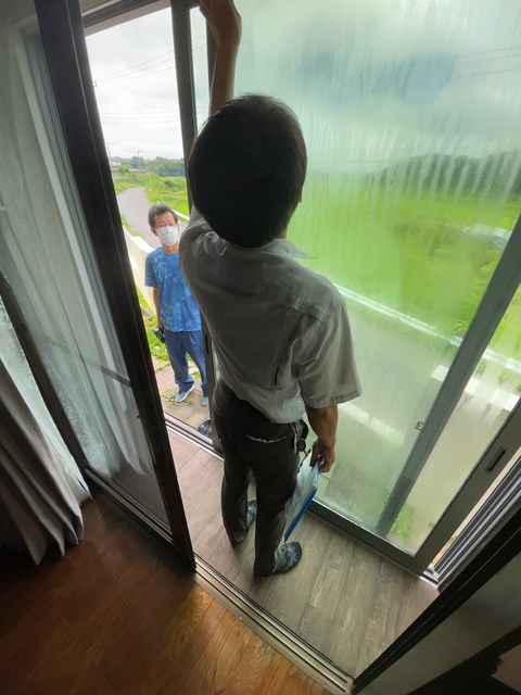 ペアガラスで出たばかりの物は、このようにガラスとガラスの間が曇っちゃうの。