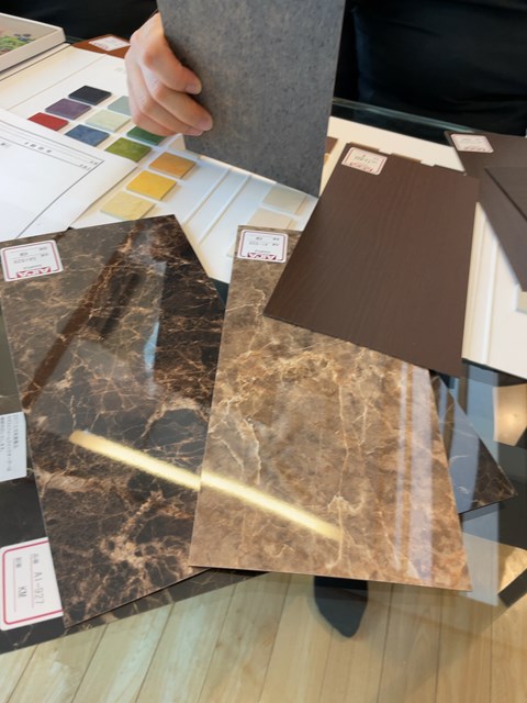 今日は、造作洗面の色サンプルが届いたので仕様決めっす!