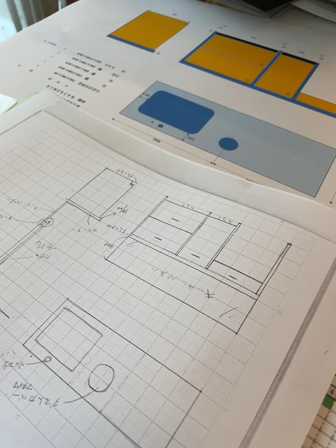 浮いてる造作収納でどのように固定するかをワタクシなりに考えた内容をKさんにプレゼン☝