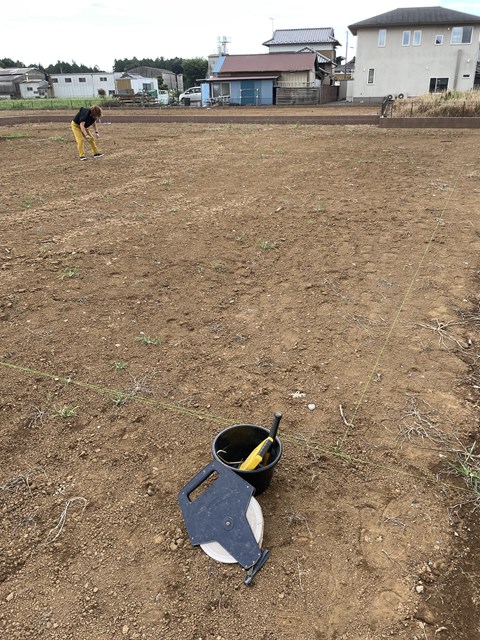 他の区画の地縄は白いビニールテープでやってるんだけど、ワタクシはちょっと違います✌