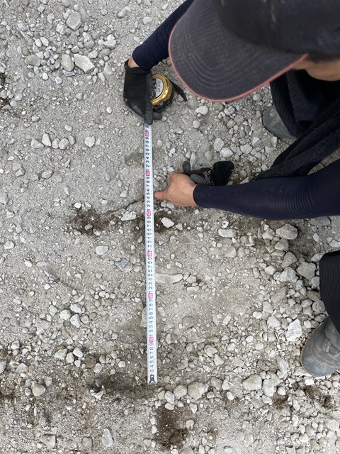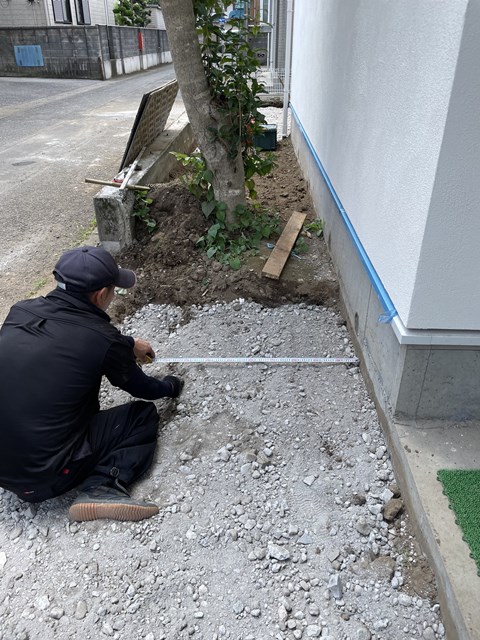 コレ、何の打ち合わせをしているかと申しますとぉ~門柱の位置を検討しておりますぅ⤴