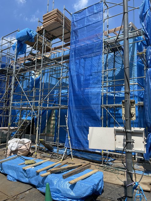 先日ご上棟したS様邸は、本日大工全員集合で屋根作業ですぅ⤴