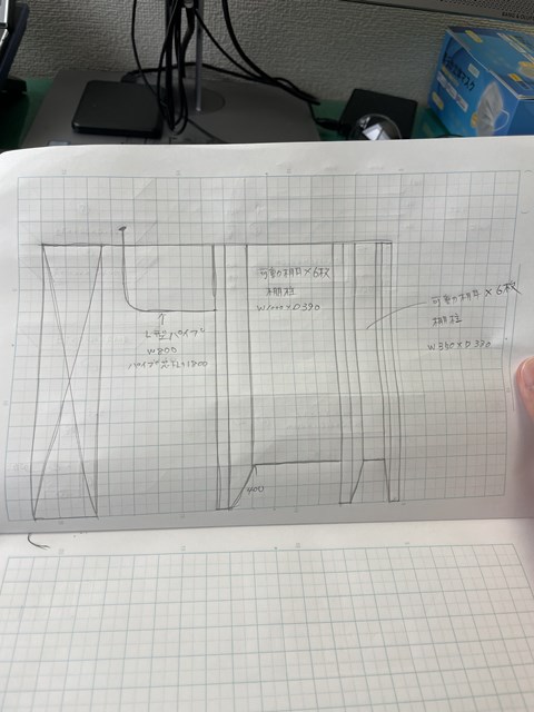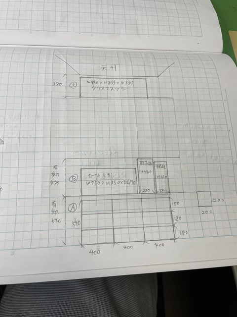 縮尺を合わせて手書きで書いて無駄にならないように、リストにあるものをどこに何を入れるかを書いてますぅ⤴