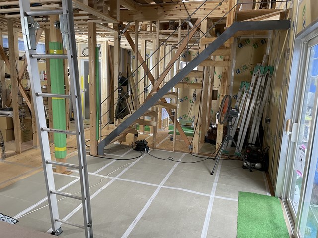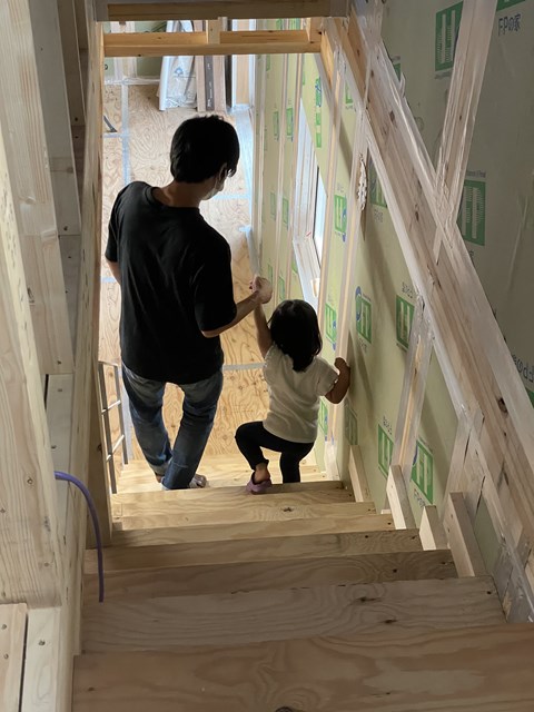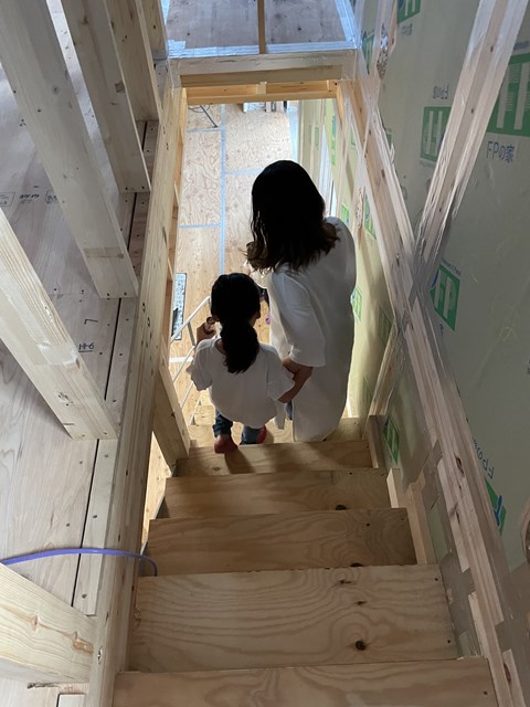 私が休み入る前にカントクゥ~とOさん、鉄骨Yさんに今日の打ち合わせまでに階段を間に合わせ仮踏み板まで設置するのをお願いしていたので