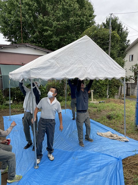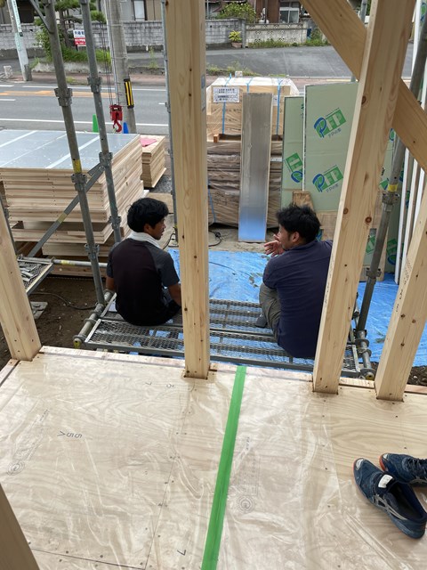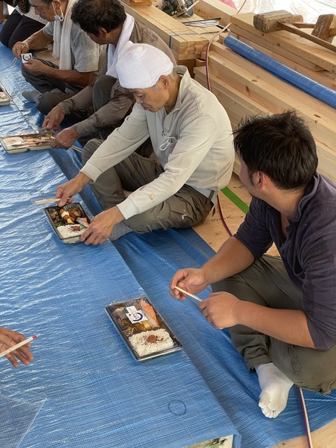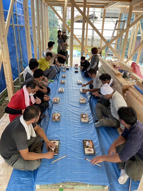 前回の上棟は暑さでみーんなバテてましたが、今日☁で涼しいから