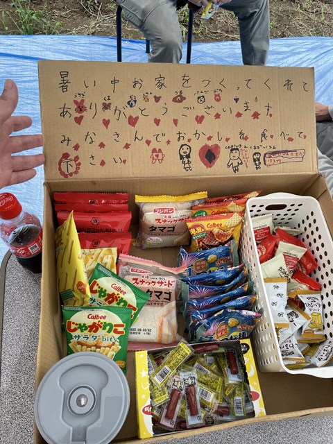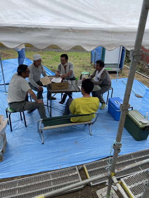 ワタクシとカントクゥ~は材料の荷揚げがあったのでちょっと遅れて10時の休憩に