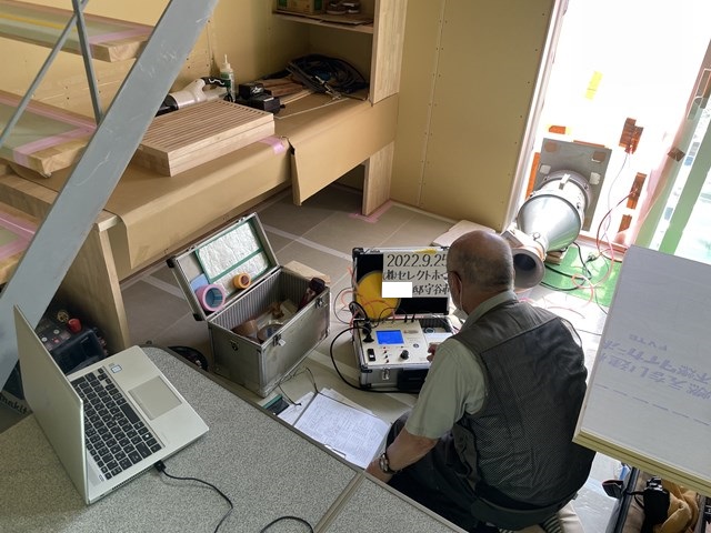 ドッキドキの気密測定です~。私以上に担当大工Yさんの方が緊張してますか(´・ω・)(・ω・`)ネー