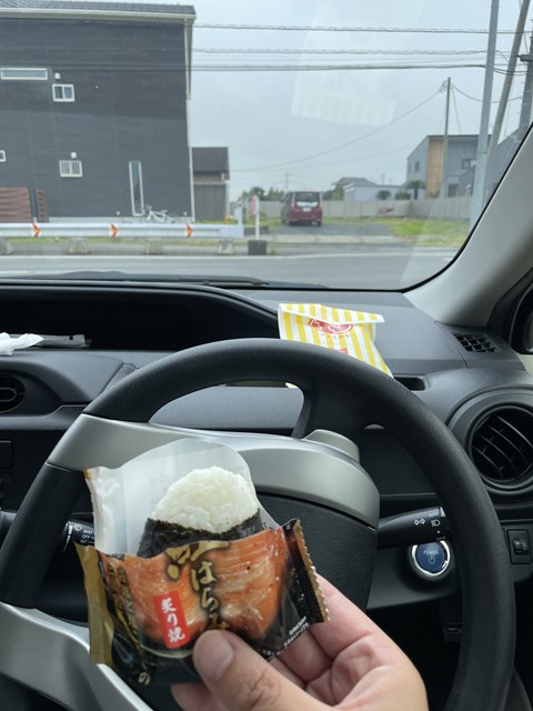 車の中でファミマの🍙(´~`)モグモグ