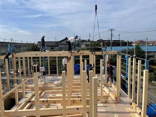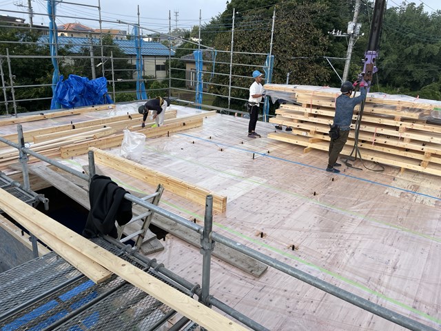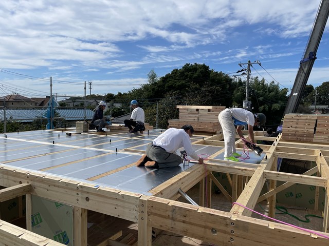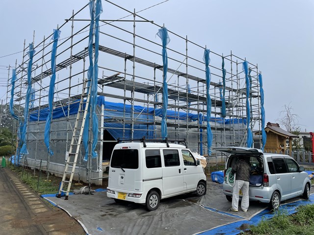 さてさて、今日は守谷市Y様邸、、、のびのーびになってた上棟ですがー