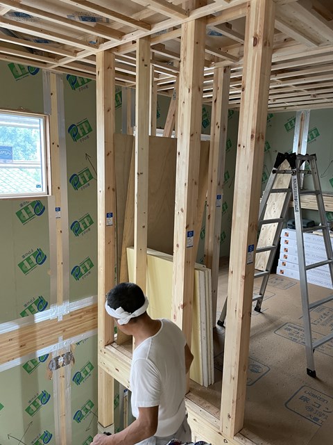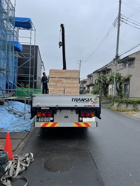 2F壁パネルは足場屋さん(カントクゥ~)が荷台を作った上にしっかり雨養生して完了👍