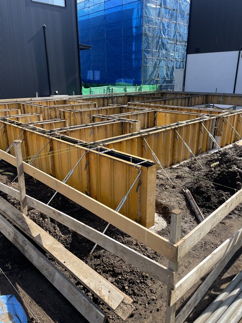 Fさんが立ち上がりの型枠を汗かきながら設置してくれてます(´▽`*)
