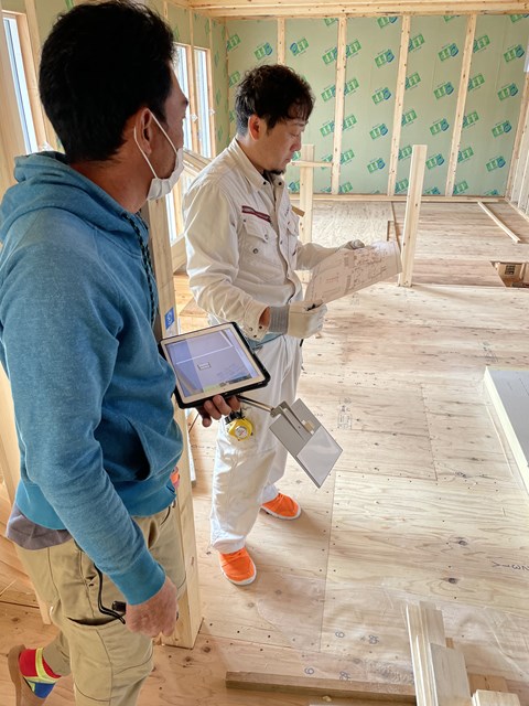 コンベックス当てて寸法確認し、ワタクシと大工Yさんのイメージは共有できたので