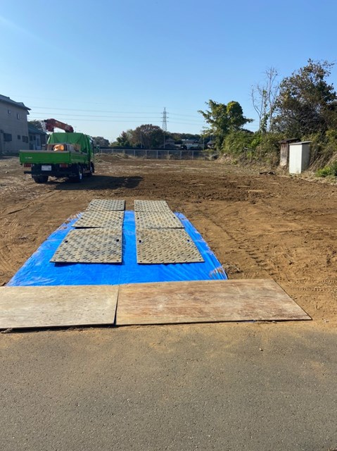 道路から奥に向かって結構下がってるなー🤔 レベル器持ってくればヨカタヨーw