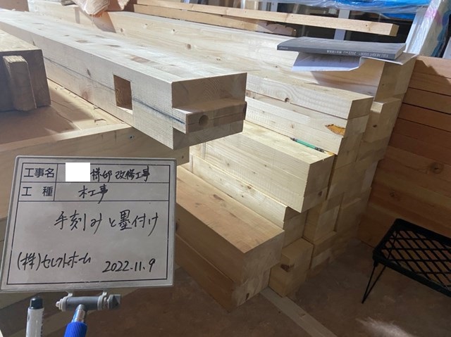 大工Bさん、20年ぶりの手刻みです((´∀`))ケラケラ