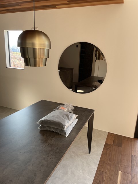 持ち込みの丸鏡メッチャ素敵だわ✨直系1mっス💧メッチャ重いっす💦下地入って無いから止め方メッチャ考えたっすヽ(;´Д`ヽ)(ノ;´Д`)ノ