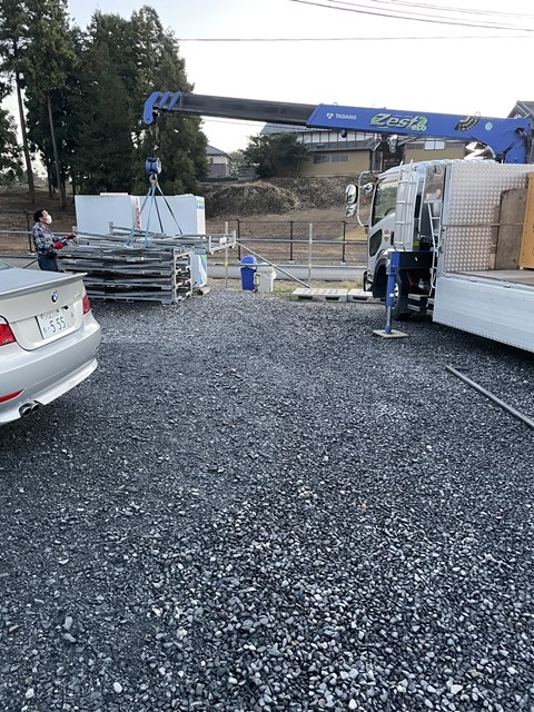 チャーター便(行先はウチの現場ではないです)の4tトラックが現場足場に思いっきりぶつかったんだって。