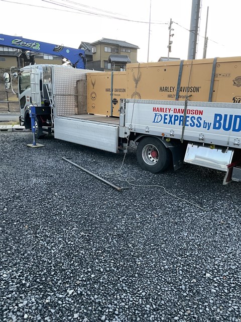 凄いねぇ~。ハーレーダビッドソンが3台乗ってます。コレだけで相当な金額っすねー。