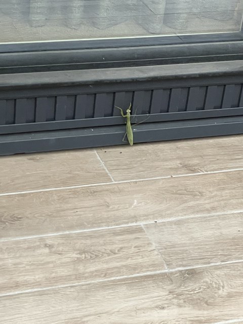 カマキリちゃん、村長邸の中は汗ばむくらい暑いよ