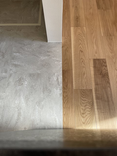 見る人が見るとわかりますが、床材とフロアタイルの突き付け位置もこだわってます🤭