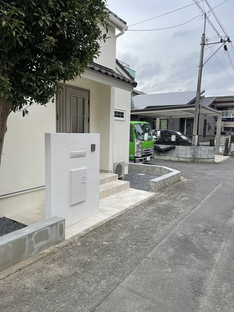 玄関前のタイルは輸入タイルを貼らさせていただきましたが