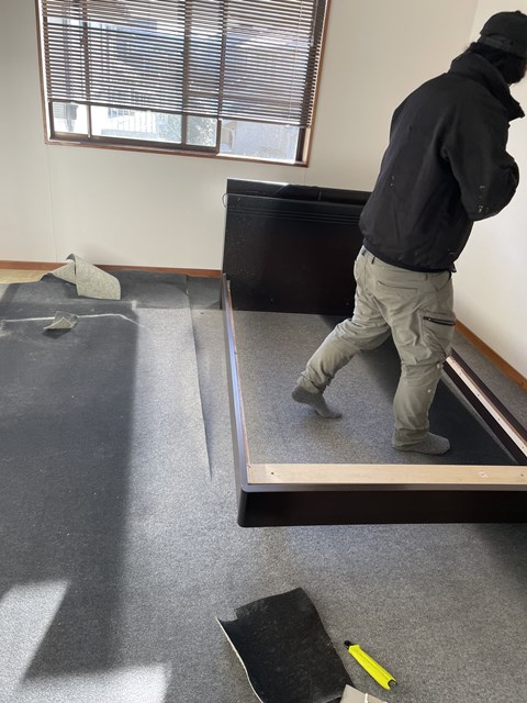 2Fの洋間2部屋がカーペット敷になっているのをフローリングに変える工事。
