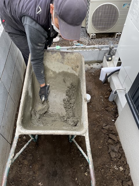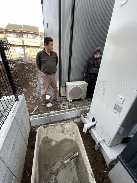 外構Tさんがブロック積をしてくれております👍