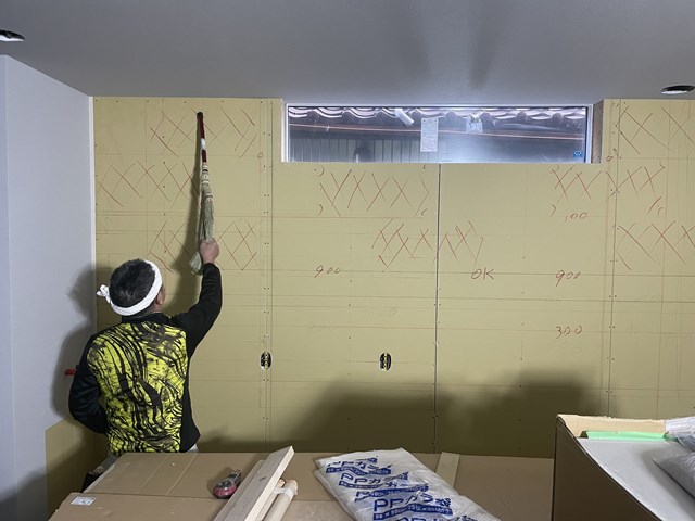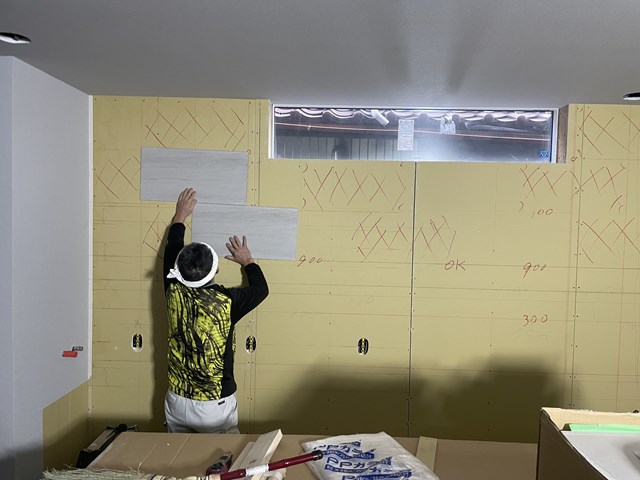 最近カントクゥ~に私からの指示は一番キレイに納まる割り付けを大工さんと相談して!