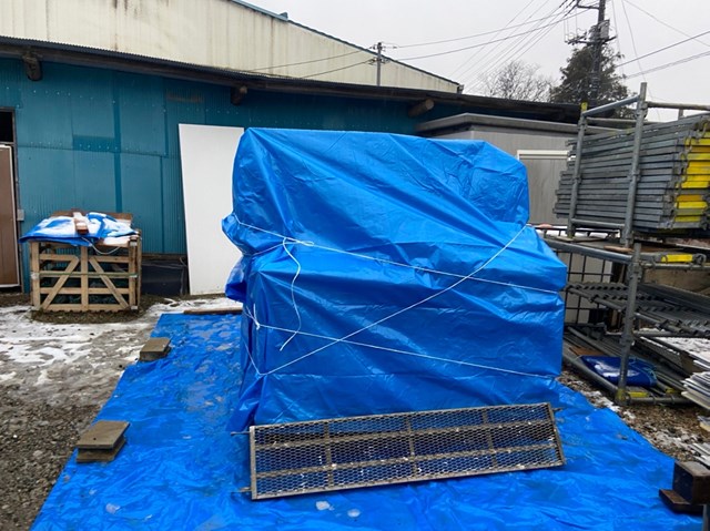 昨日荷受けして、ウチのカントクゥ~が高級ブルーシート(分厚いやつ)大盤振る舞いで