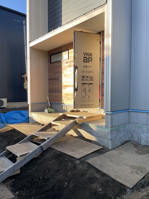 打ち合わせ内容は玄関とポーチに貼るタイルの割り付けですわ☝