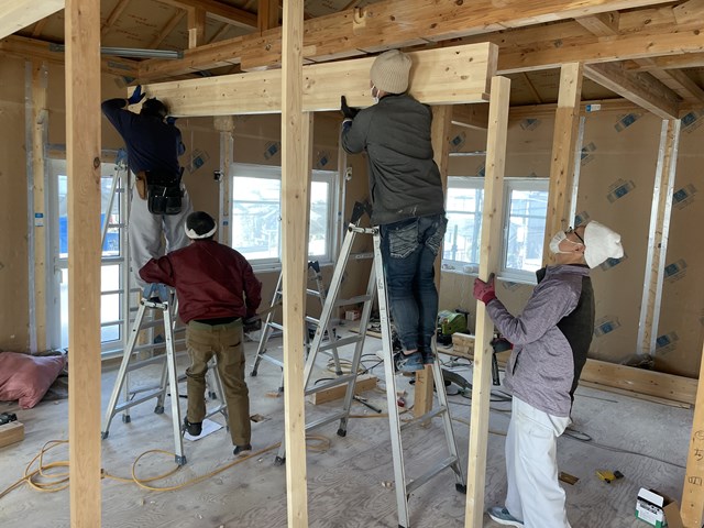 自邸担当大工Yさんがノミで梁受け加工してくれてます✨