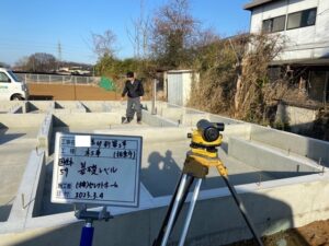 こんな感じで大工Kさんとカントクゥ~で基礎のレベルチェックをします☝
