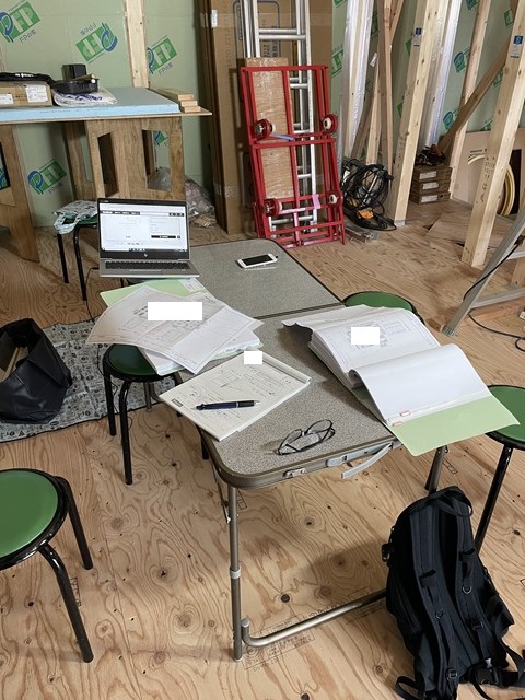 上棟して2週間くらいなので、まだホワイトボードの連絡事項がいっぱいです。
