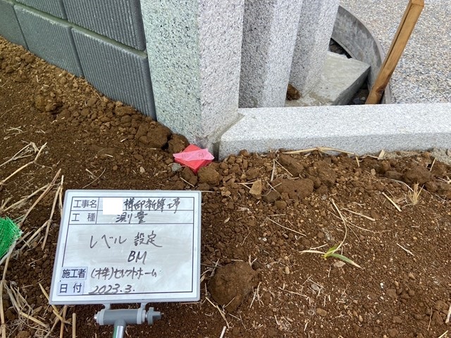 この杭よりグランドレベルを10cm上げ⤴とかいう感じで決めるのよ。