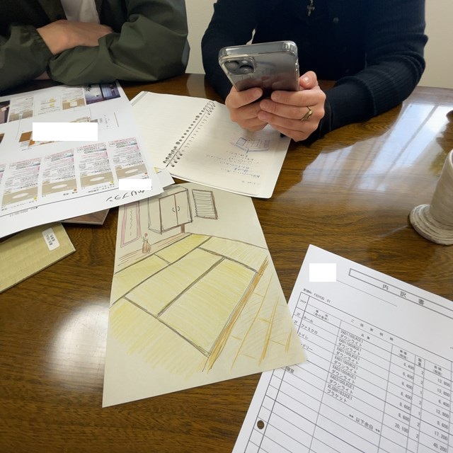 取り寄せてお渡ししたサンプルを基に、ご自宅でこんな感じで検討してきたんですよ!って聞くと